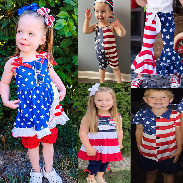 popsicle embroidery polk dots shorts set 4th of july kids clothes