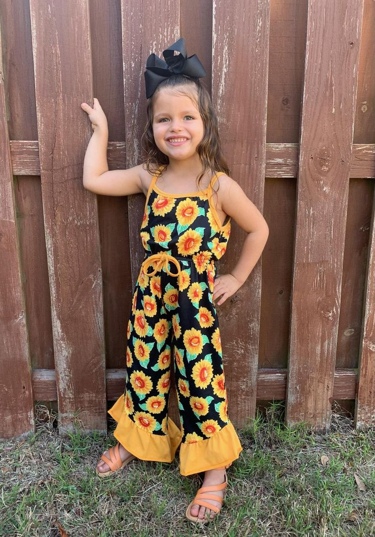 girl's sleeveless yellow sunflower lace jumpsuit summer clothing girl