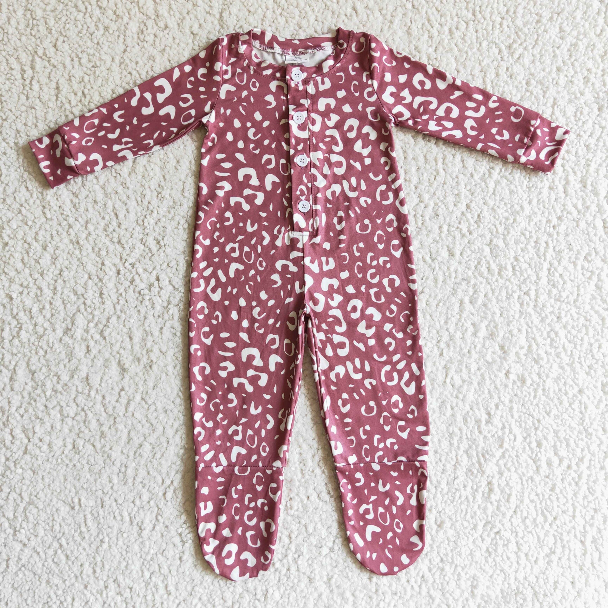 baby maroon leopard footie button romper