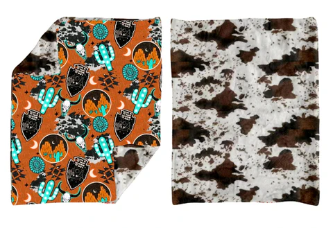 BL0205 Western Cactus Cow Print Baby Newborn Blanket