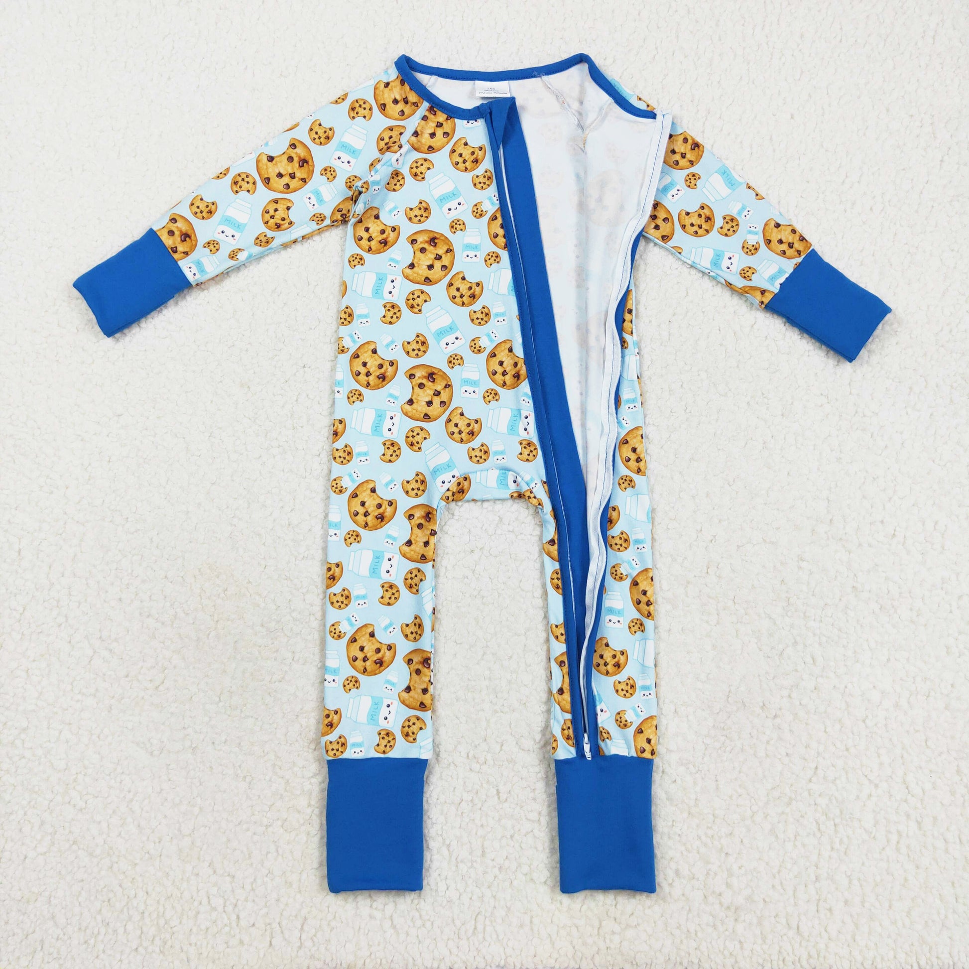 milk biscuit blue Christmas cookies print girl zip sleeper