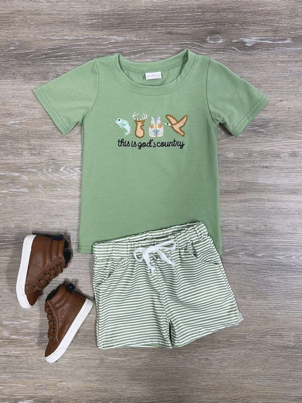 BSSO1108 USA Warehouse God’s Country Boys Outdoor Adventure Shorts Outfit