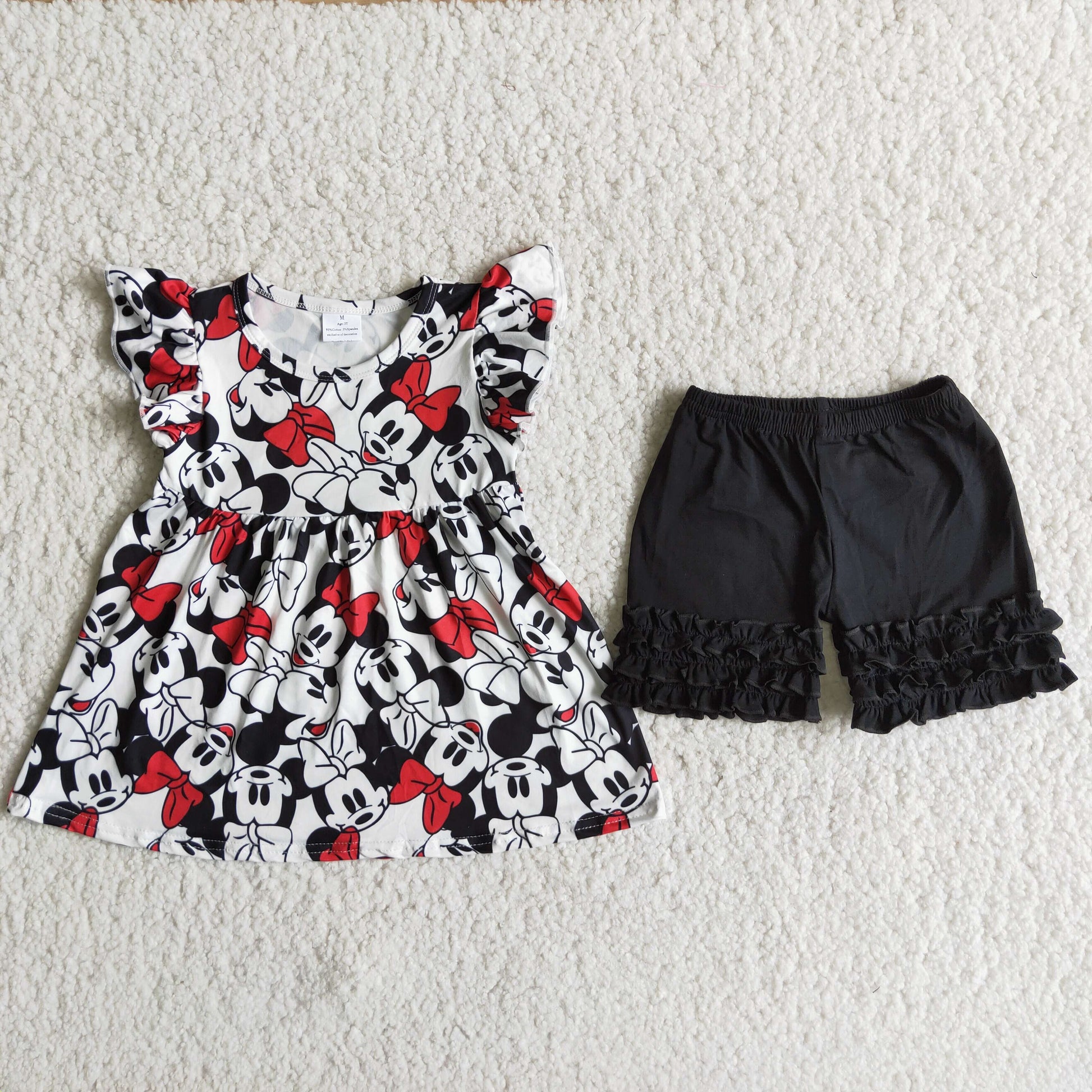 cartoon mouse black ruffle shorts set