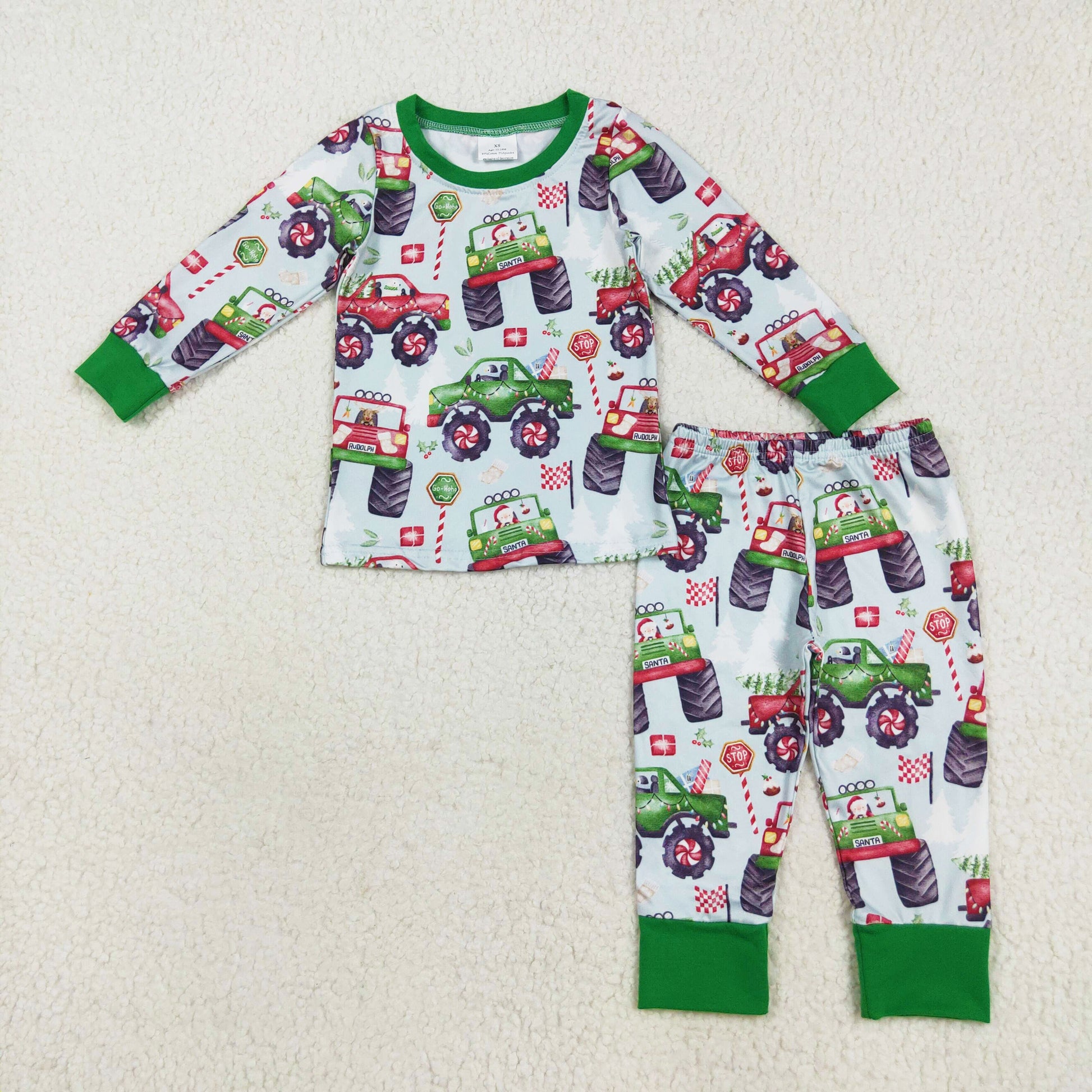 Christmas santa monster truck print boy pajama two pieces lounge set