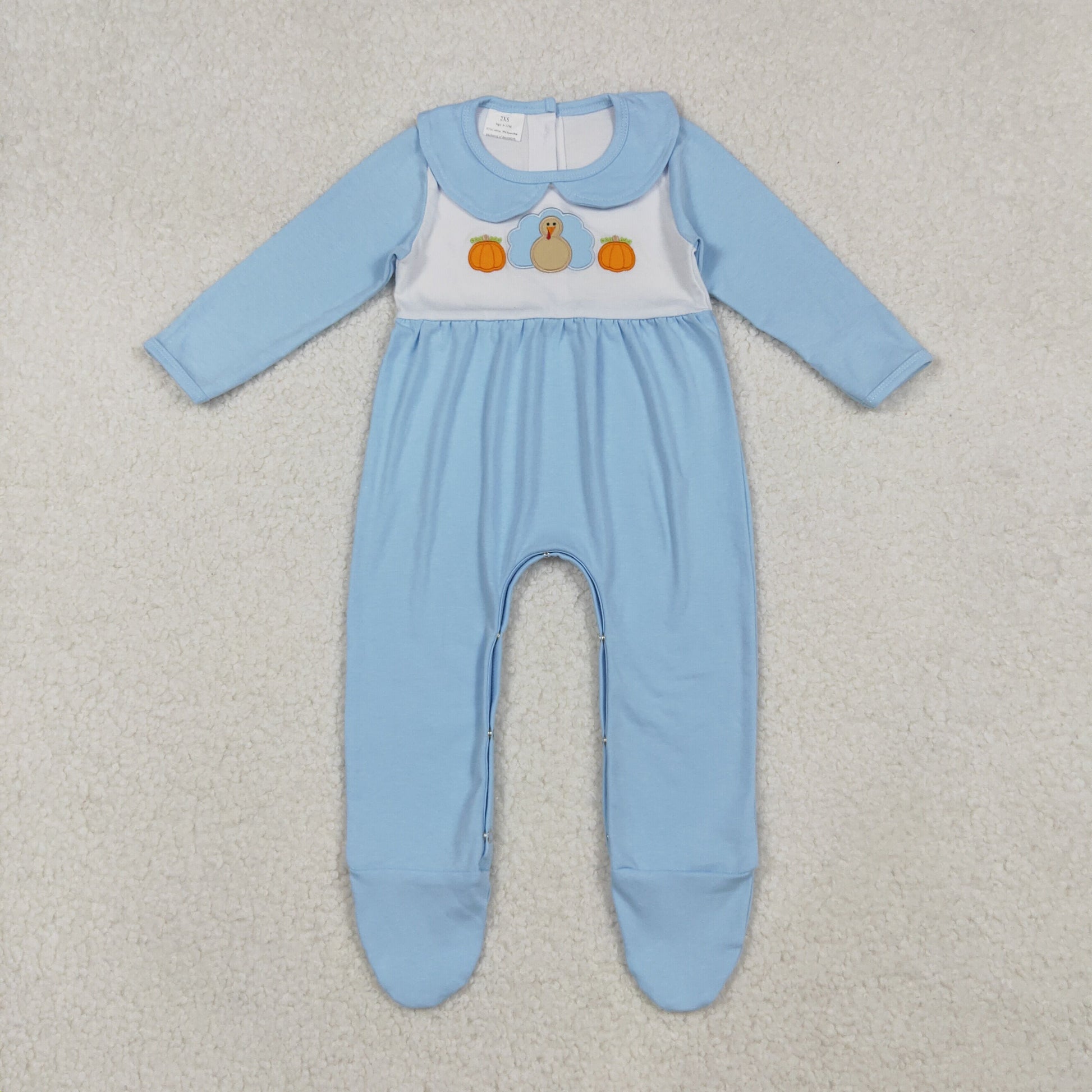 cotton blue turkey embroidery footie romper thanksgiving day infant clothes