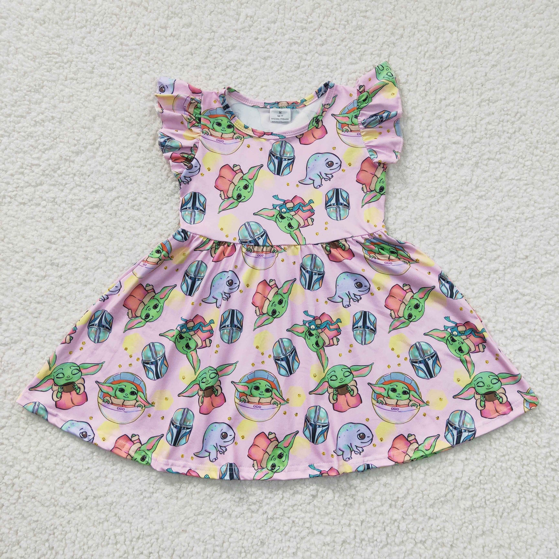 cute yoda pink flutter dress