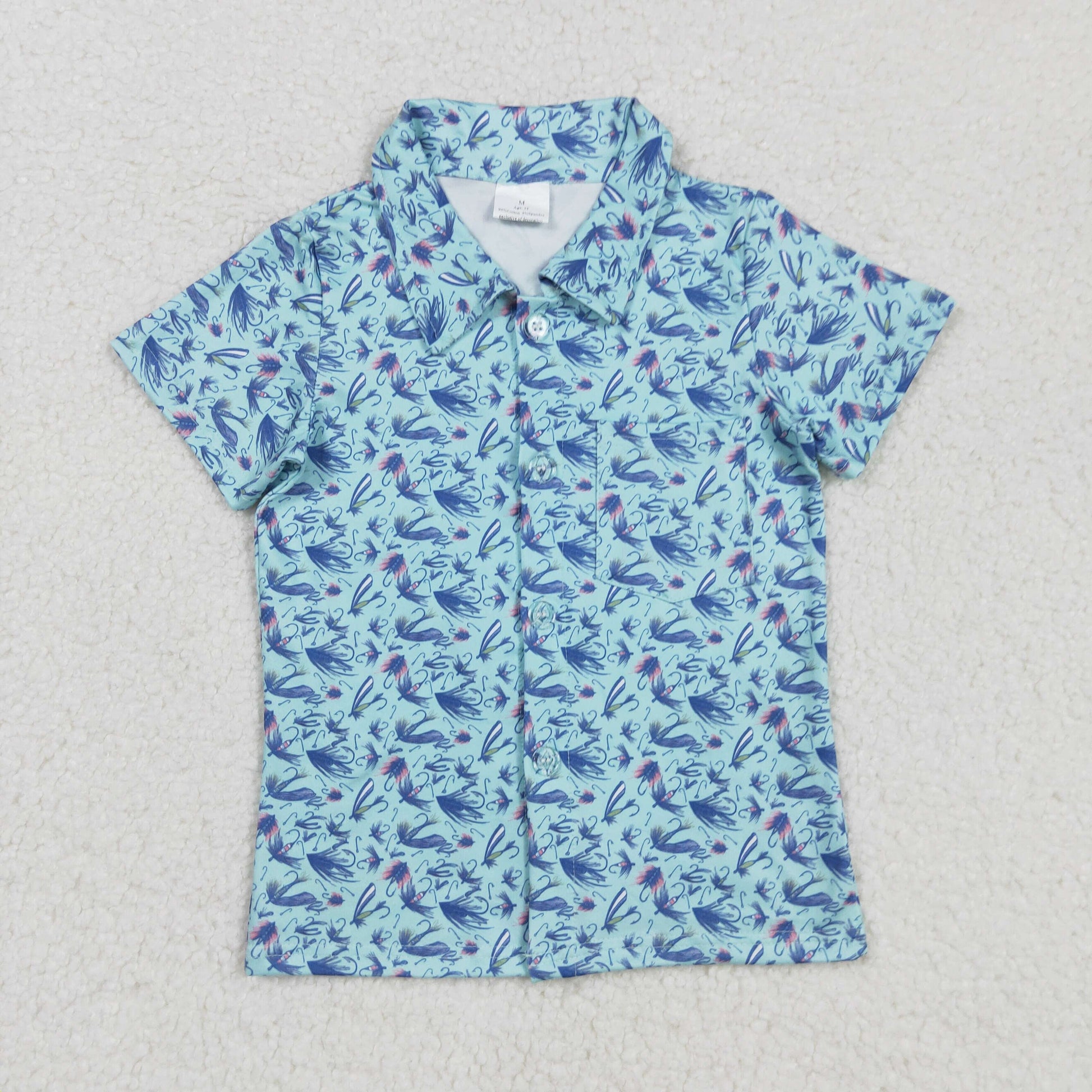 fish hook print boy button down t-shirt