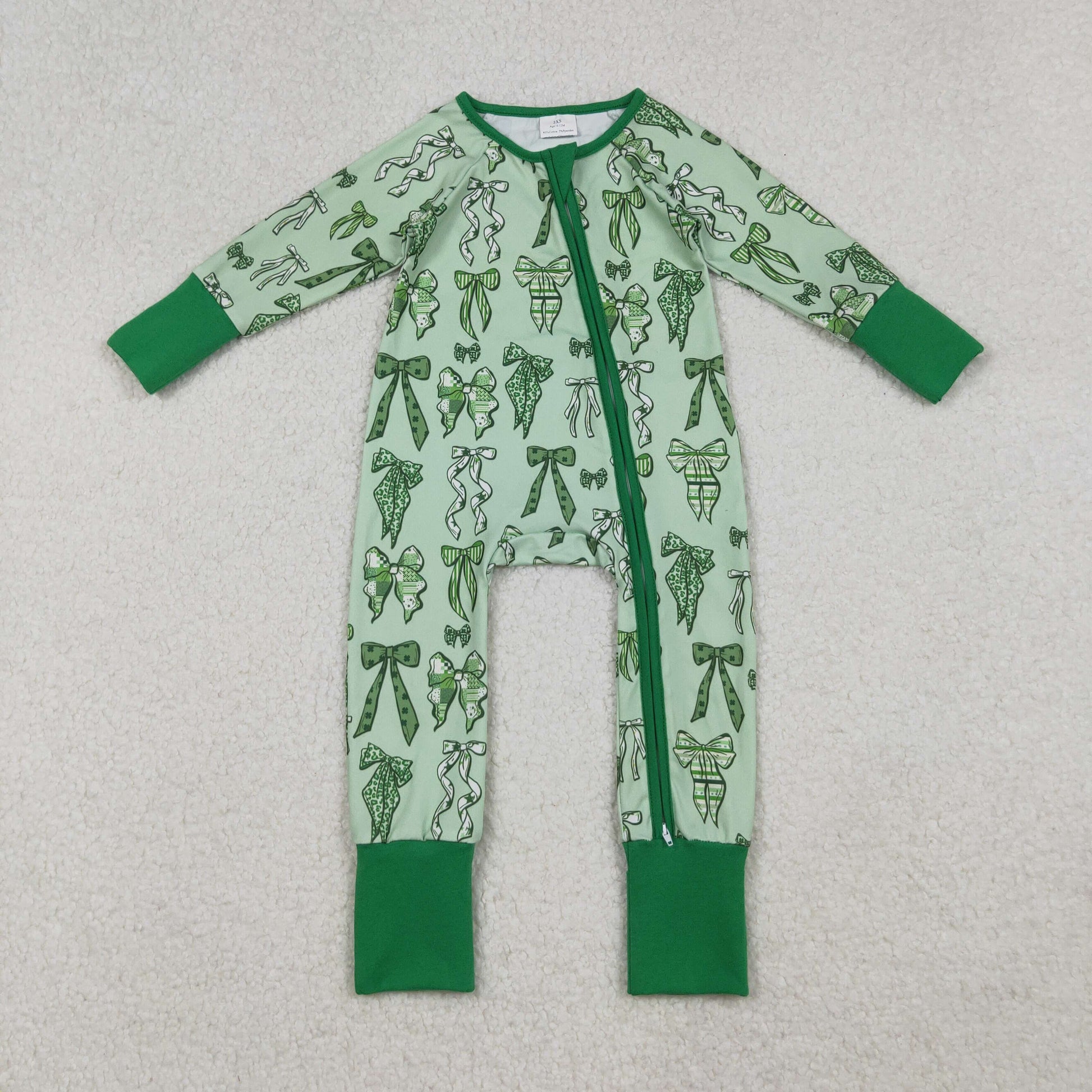green bow coquette st patrick baby boy zipper sleeper