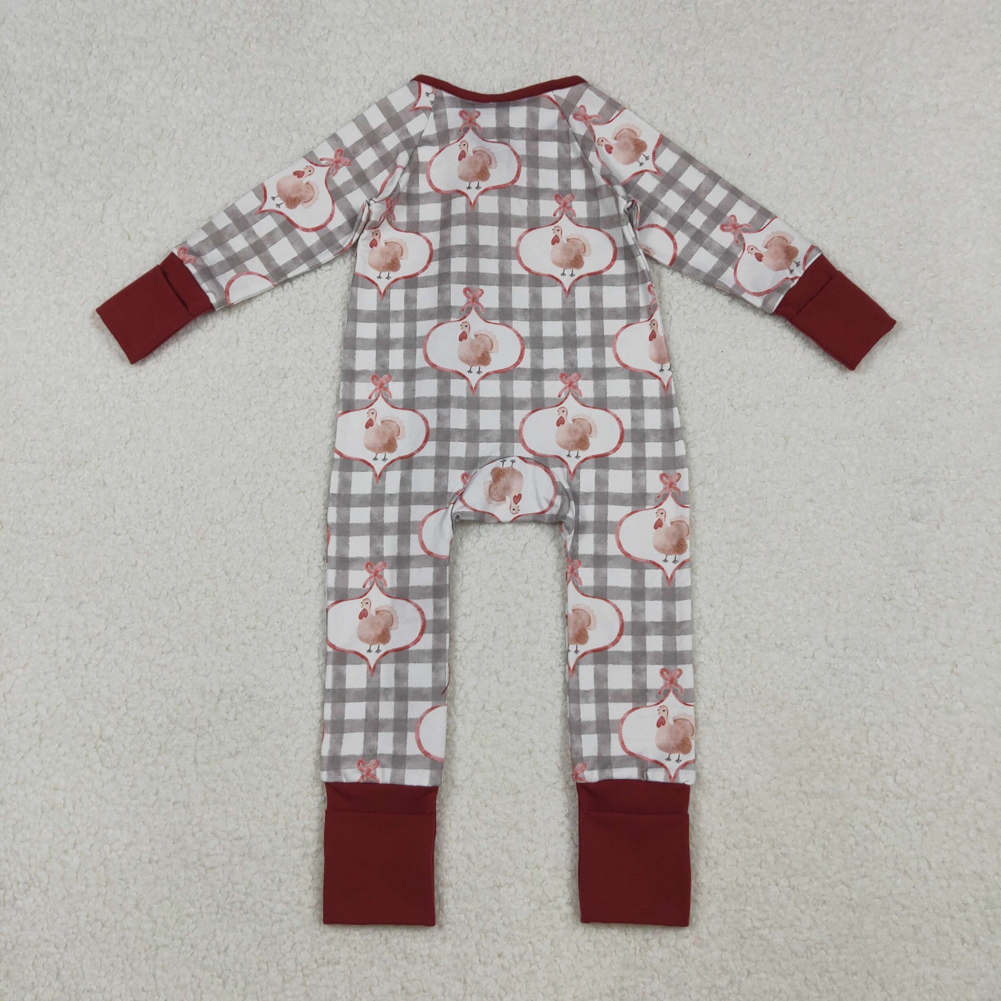 grey plaid turkey print thanksgiving day baby boy zipper sleeper infant pajama