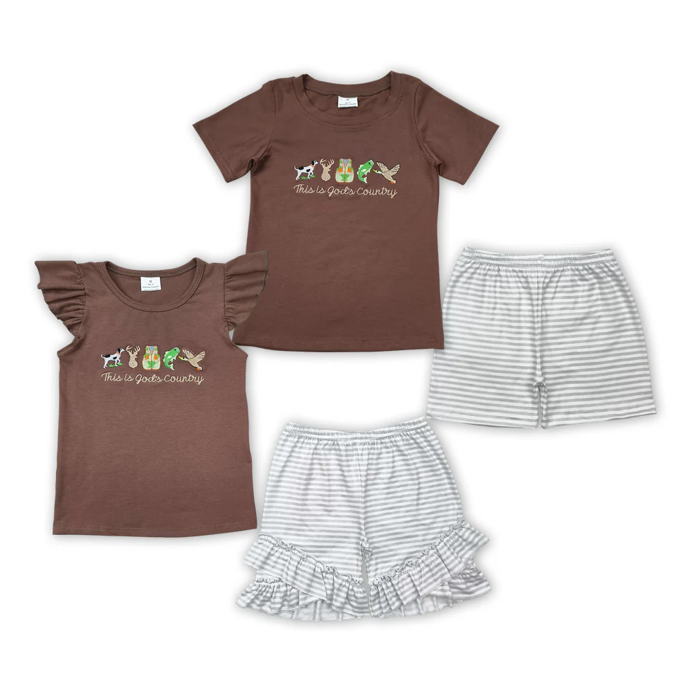 Hunter Embroidery Shorts Set Kids Sibling Easter Clothes