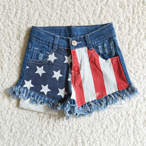 NC0003 USA Warehouse Star Stripe 4th of July Girl Denim Shorts