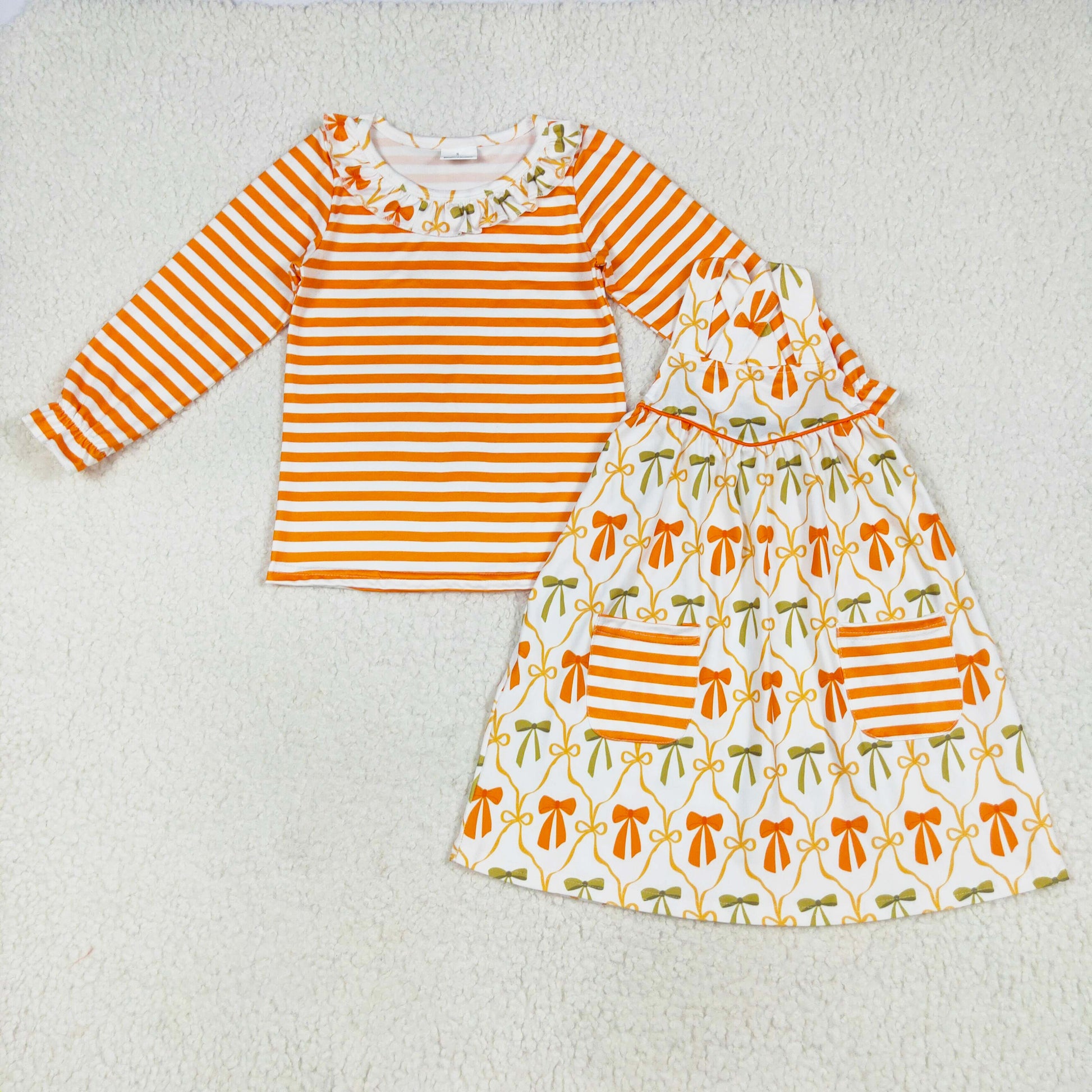 Orange Bows Print Girls Sibling Clothing