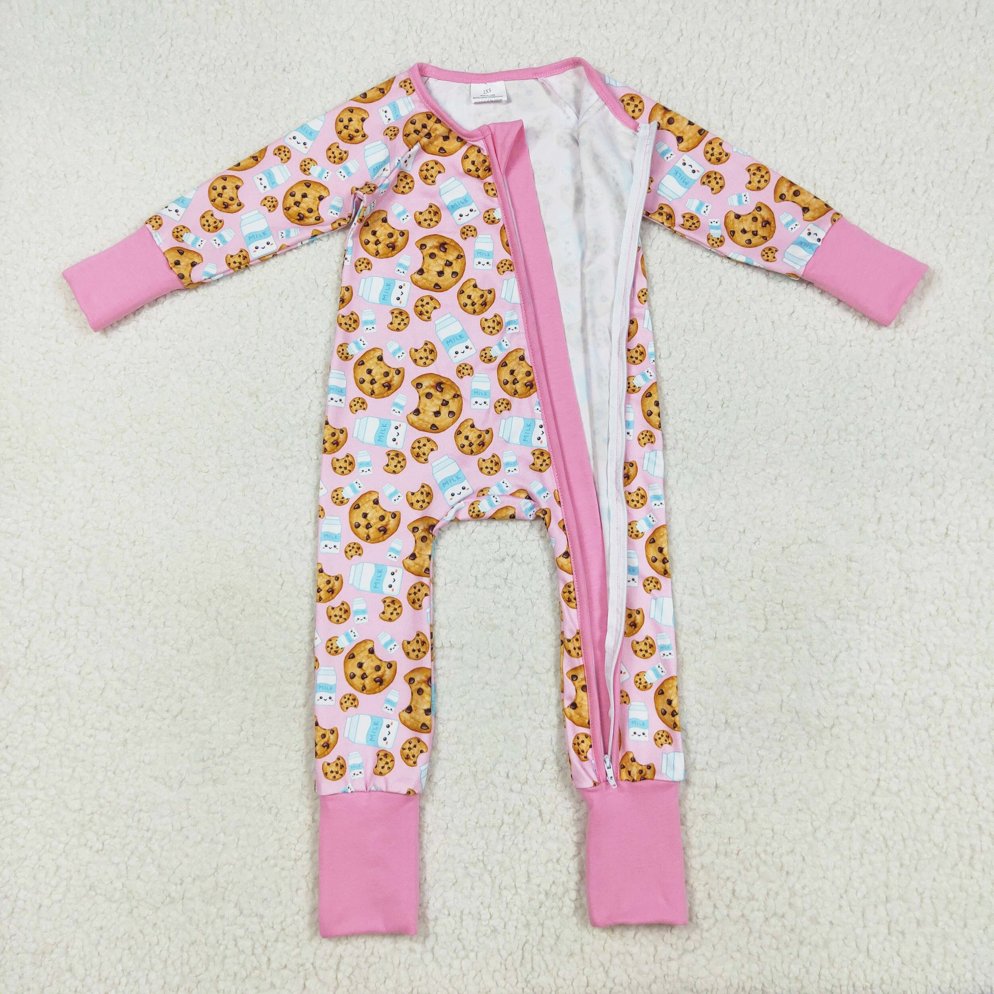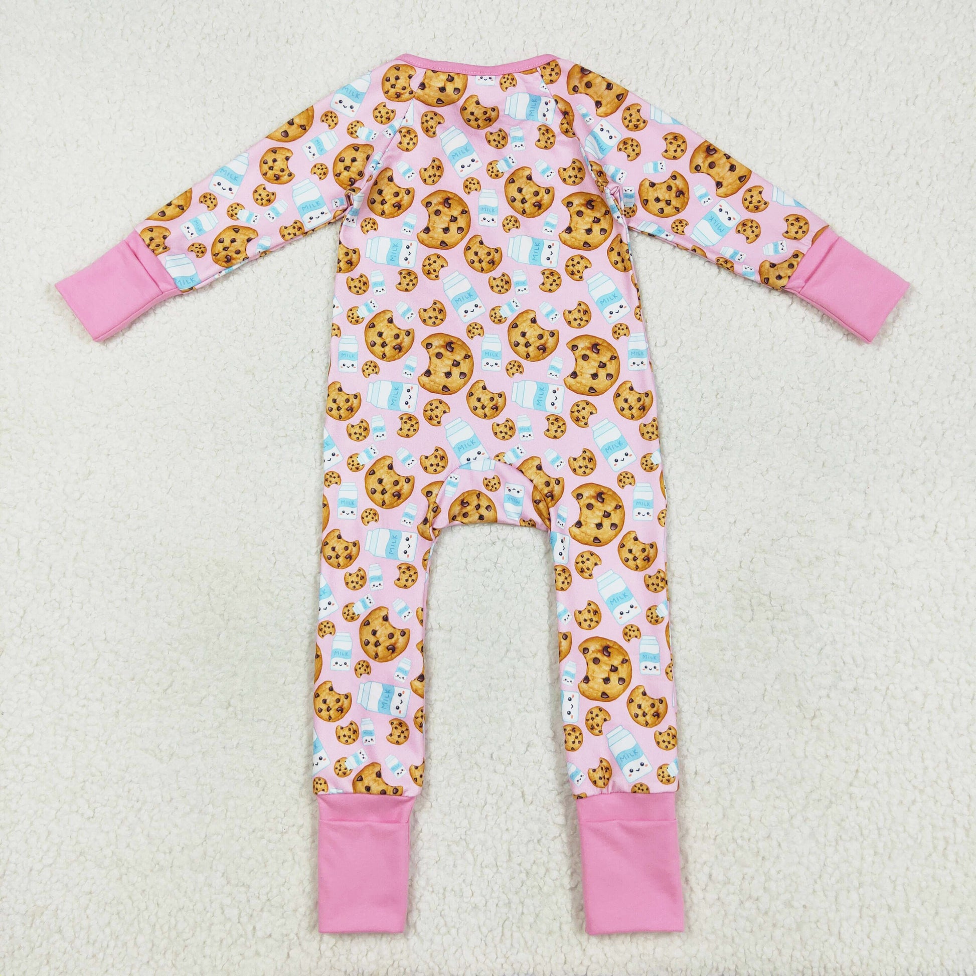 milk biscuit pink Christmas cookies print girl zip sleeper