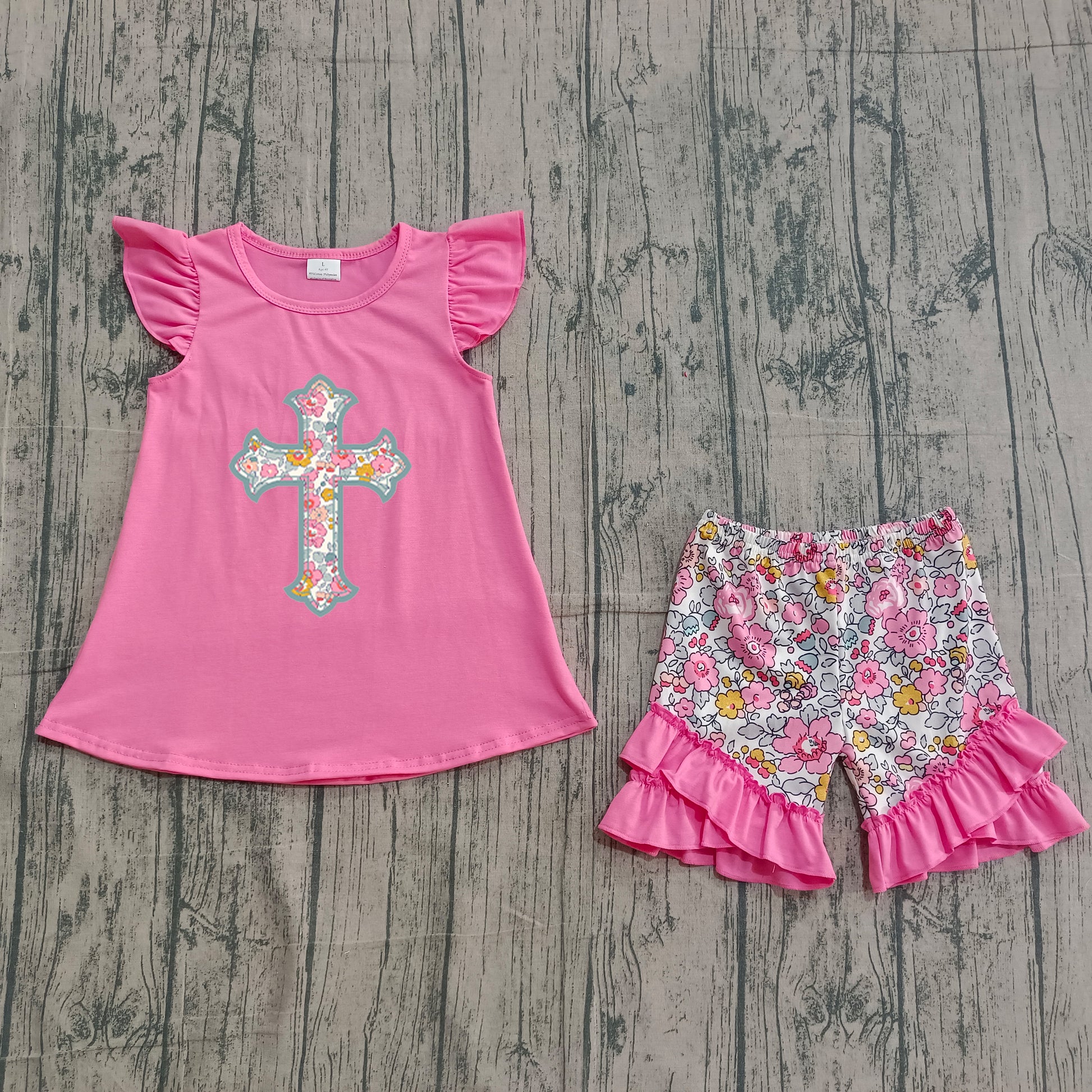 pre order floral cross baby girl easter shorts set (do embroidery)