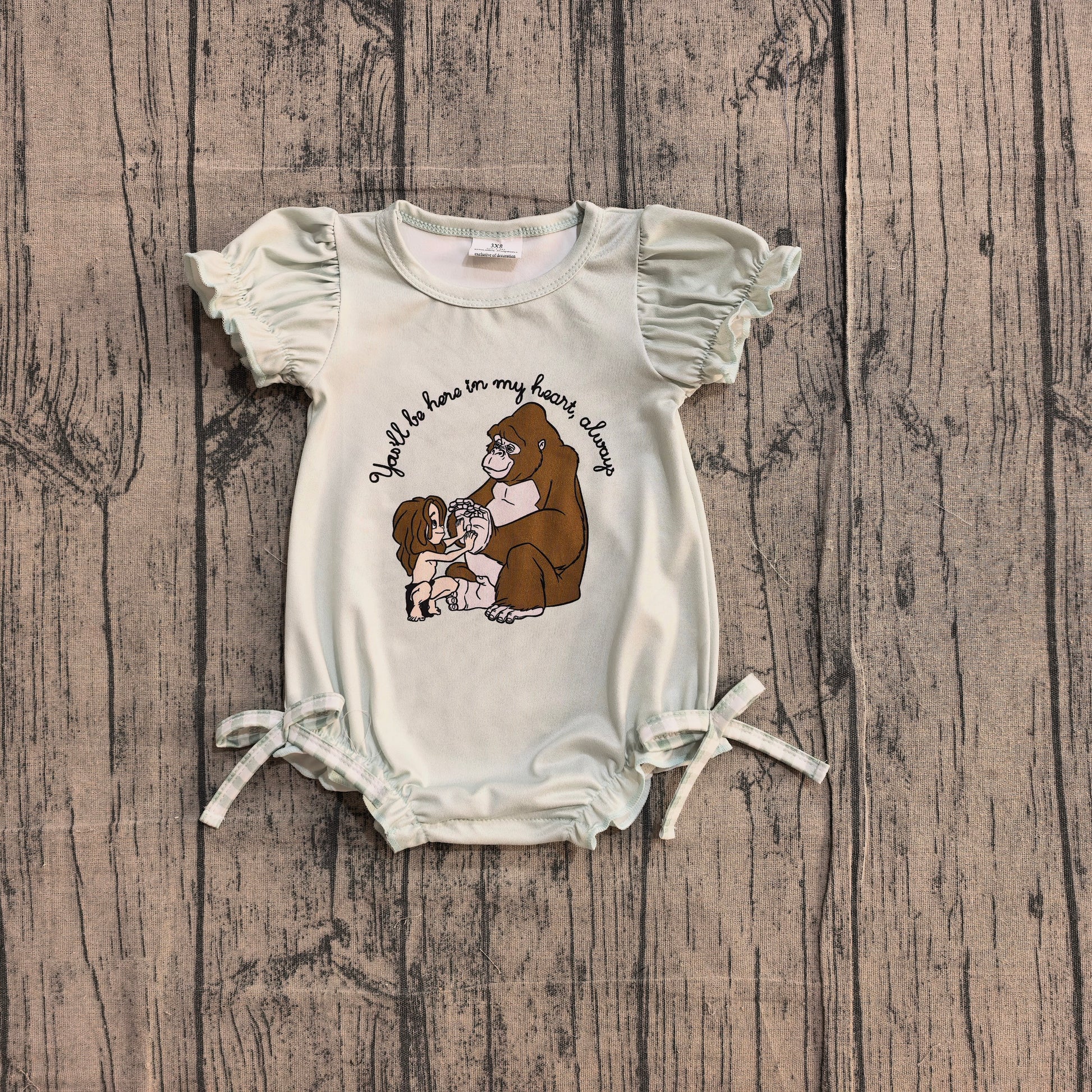 Pre order Baby Girls Short Sleeves Monkey Plaid Bows Bubble Romper