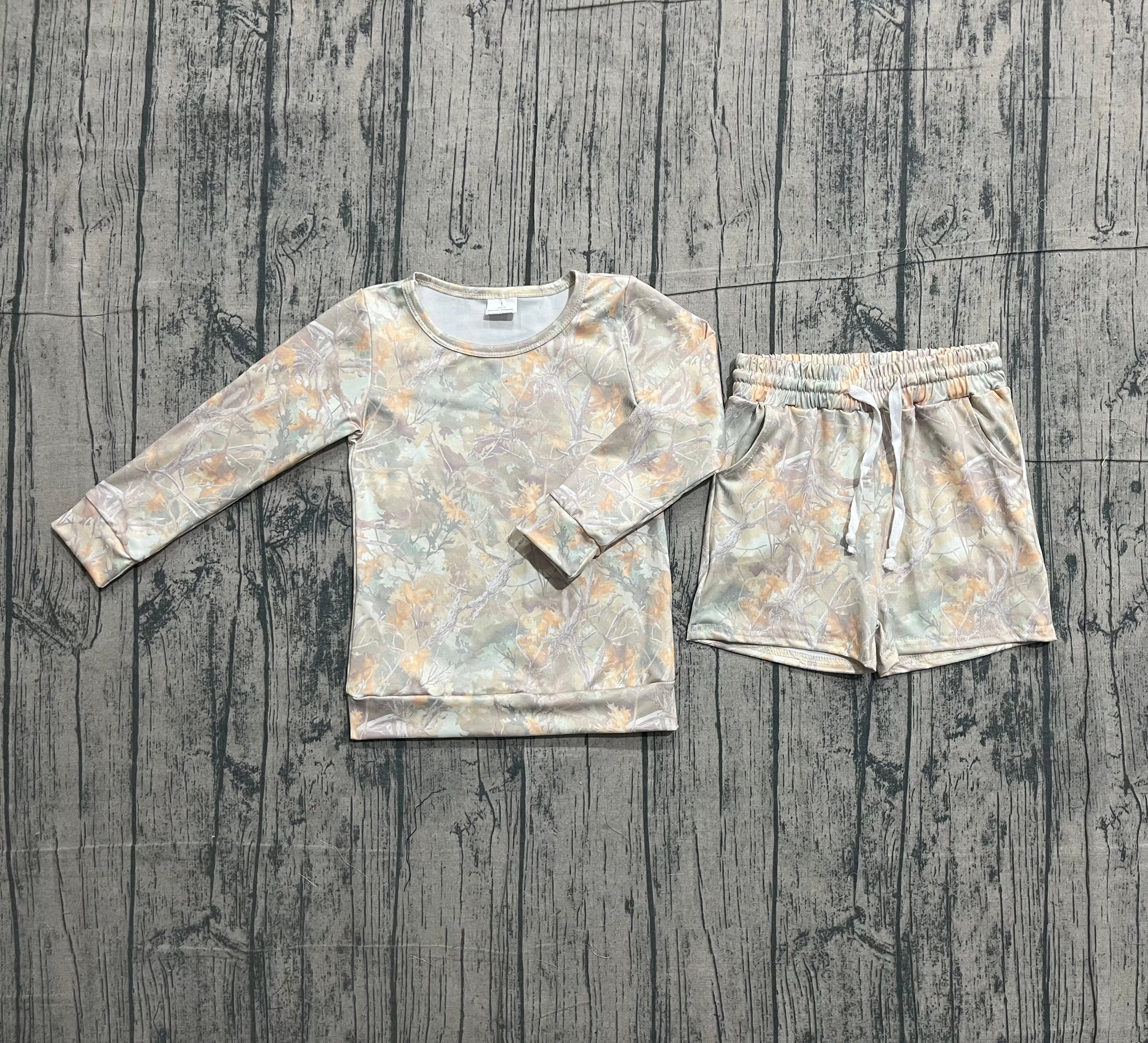 pre order long sleeve camo shorts set