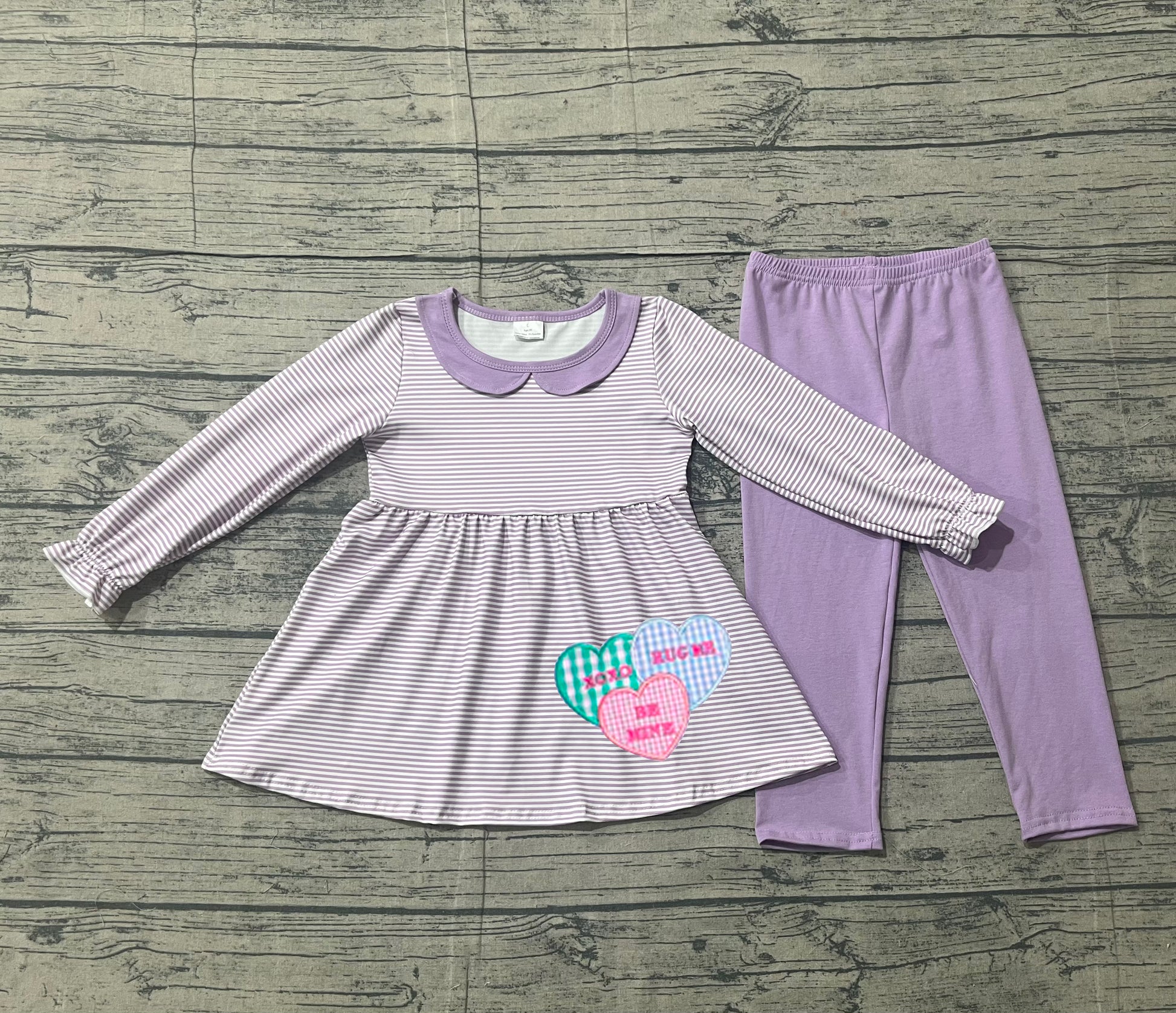 pre order long sleeve valentine heart pants set (do embroidery)