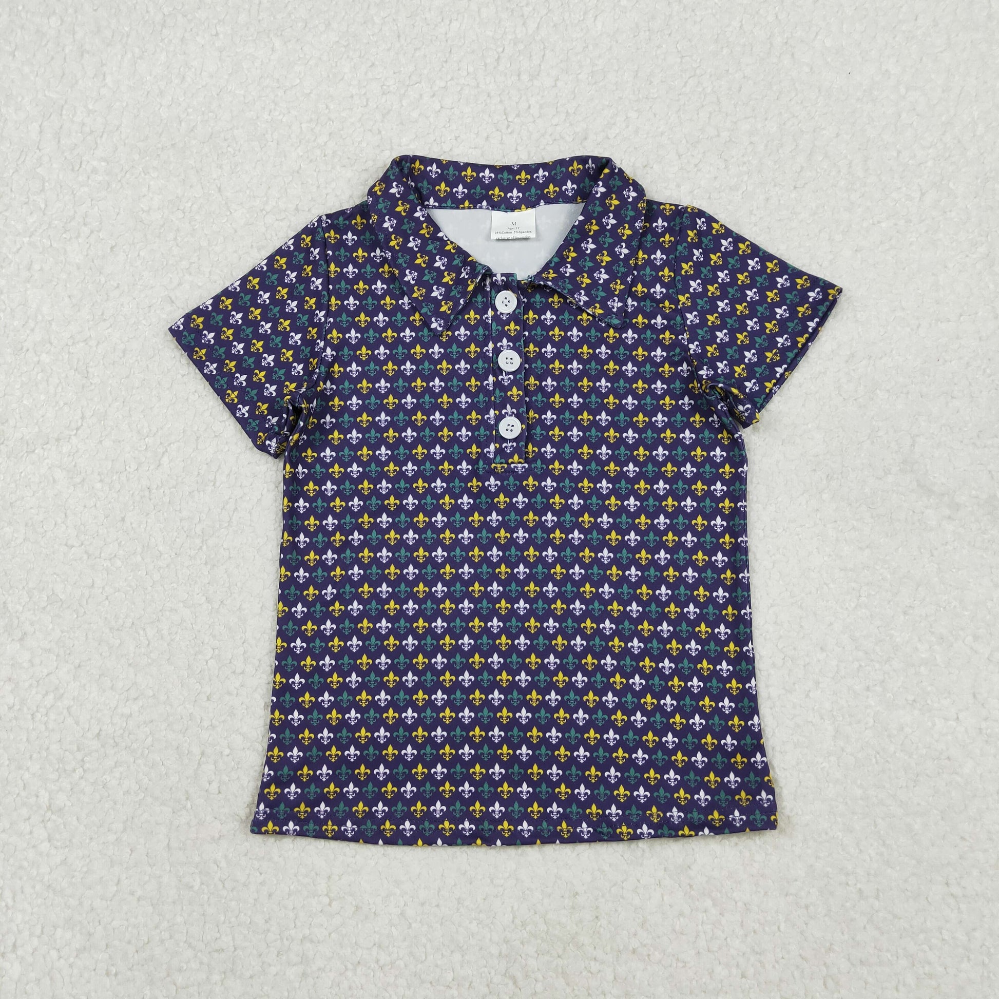 purple green gold saint button up polo t-shirt mardi gras boys top
