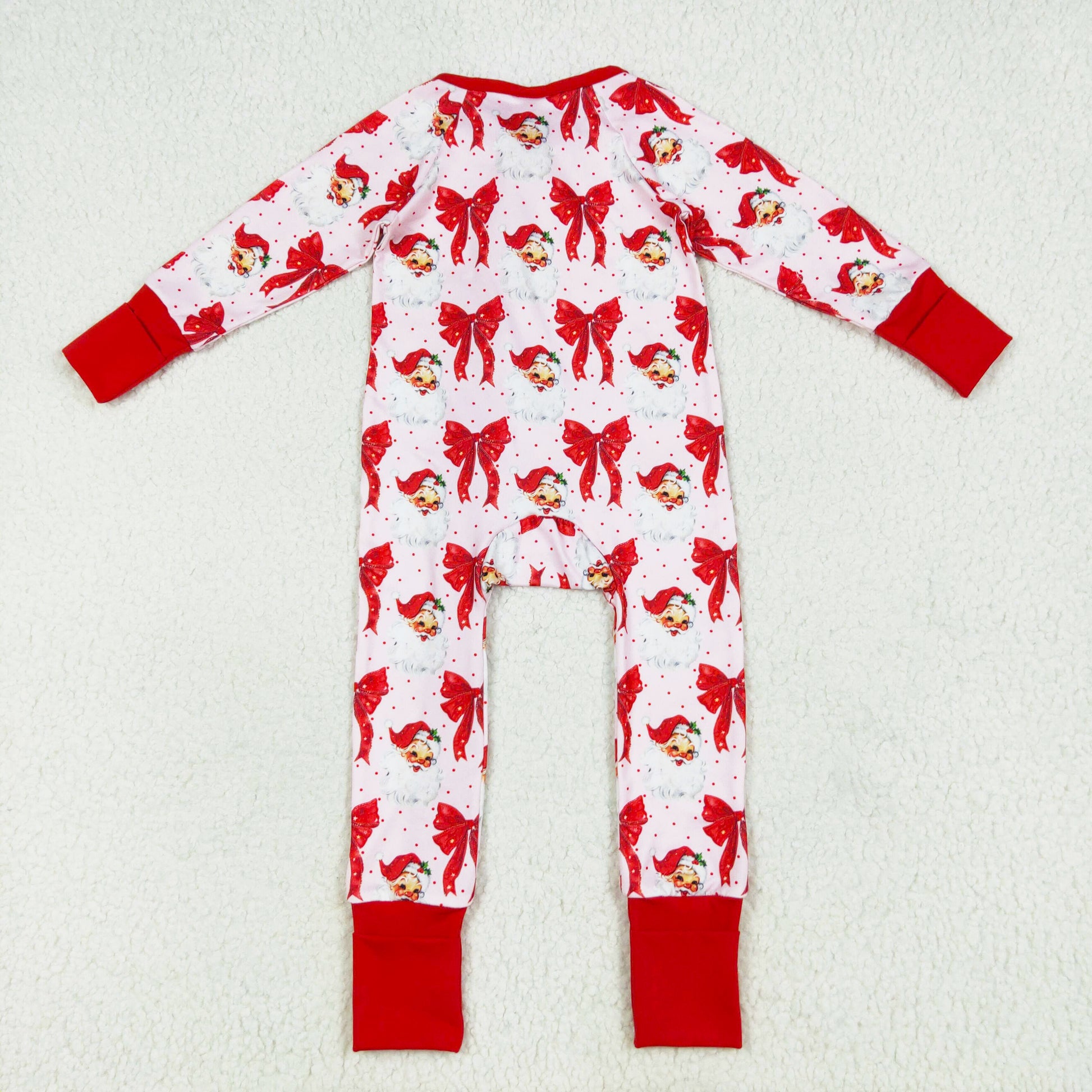 red bow santa baby Christmas zip sleeper