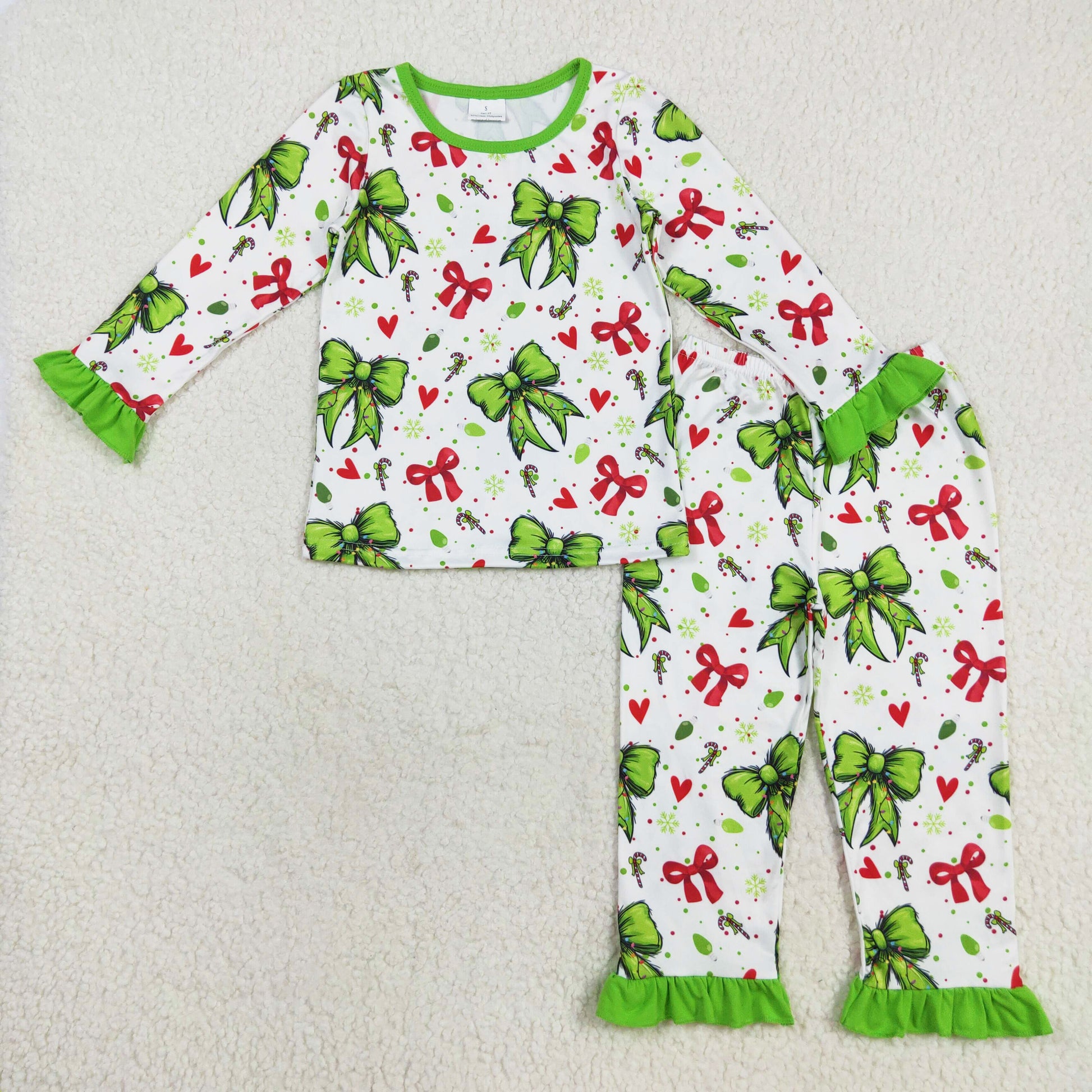 Red Green Bows Print Christmas Girl Sibling Pajamas