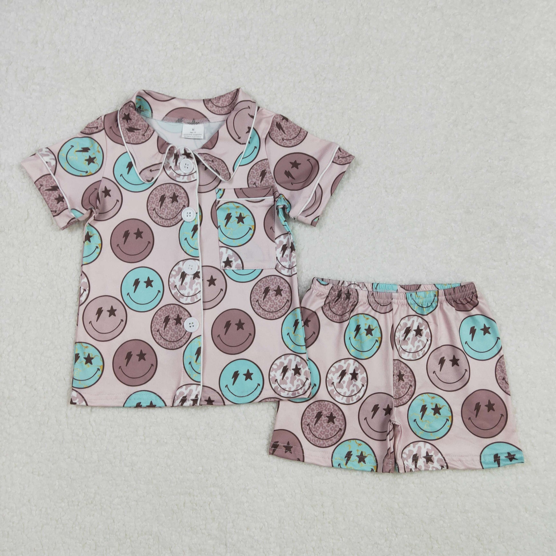 smiley print button down shorts pajama set kids sleepwear
